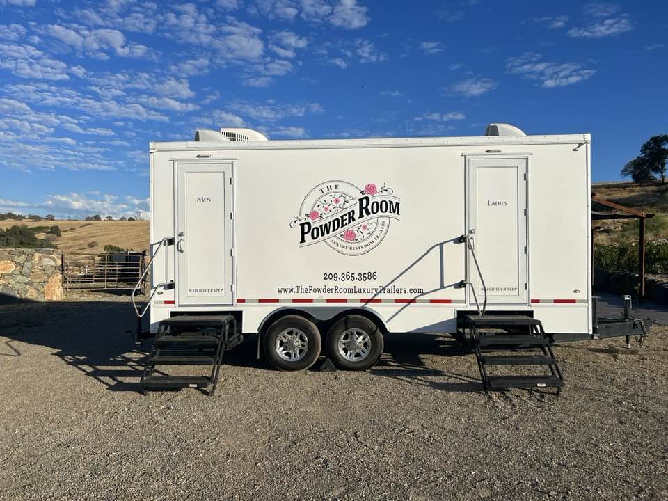 The Powder Room Luxury Trailers are located in the beautiful Sierra Foothills of Amador County, California. We are a husband and wife team who love helping people make their events extra special with our customer service, the variety of products we offer, and our attention to details that will make your day perfect! We provide Luxury Restroom Trailers to pamper your guests. Our trailers offer water flowing sinks, touchless faucets, hands-free flushing toilets, modern and stylish interiors. The luxurious interiors include heat or air conditioning. We have curated six styles of restroom trailers to meet your needs.