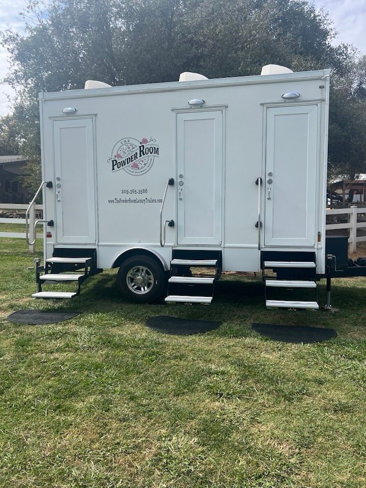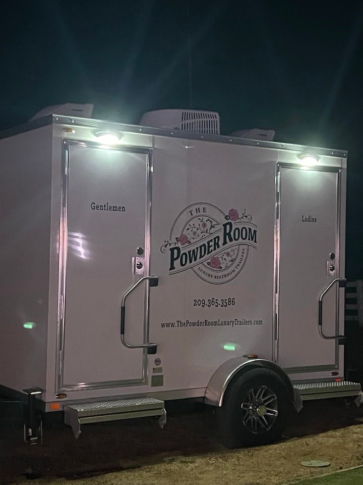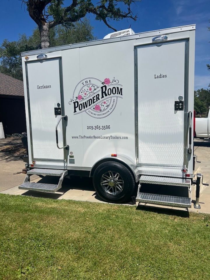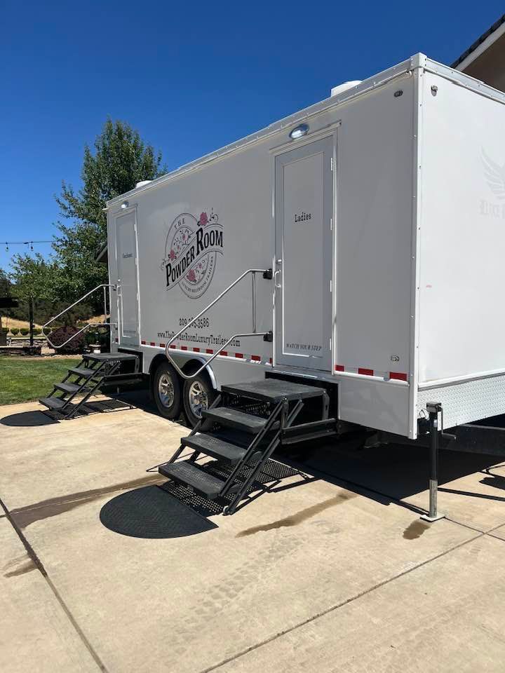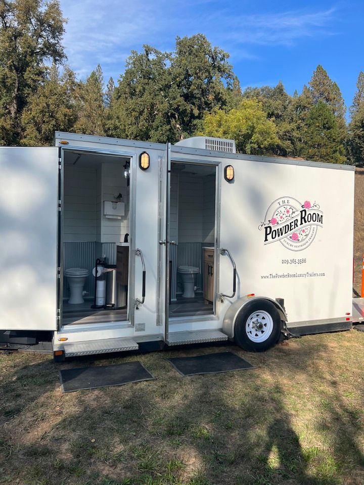 The Powder Room Luxury Trailers are located in the beautiful Sierra Foothills of Amador County, California. We are a husband and wife team who love helping people make their events extra special with our customer service, the variety of products we offer, and our attention to details that will make your day perfect! We provide Luxury Restroom Trailers to pamper your guests. Our trailers offer water flowing sinks, touchless faucets, hands-free flushing toilets, modern and stylish interiors. The luxurious interiors include heat or air conditioning. We have curated six styles of restroom trailers to meet your needs.
