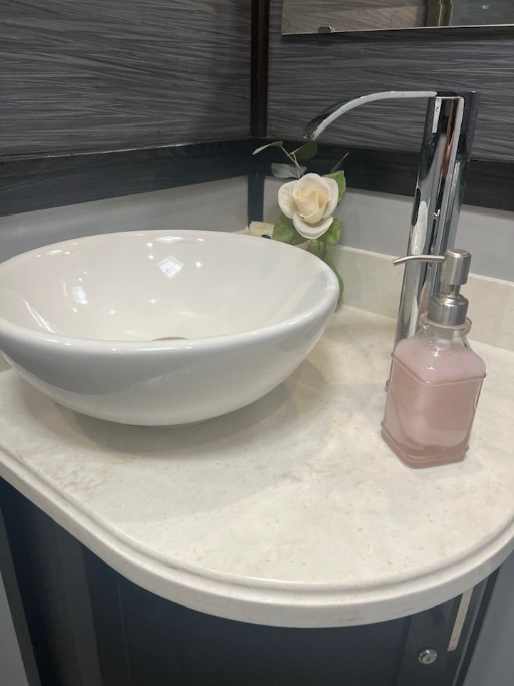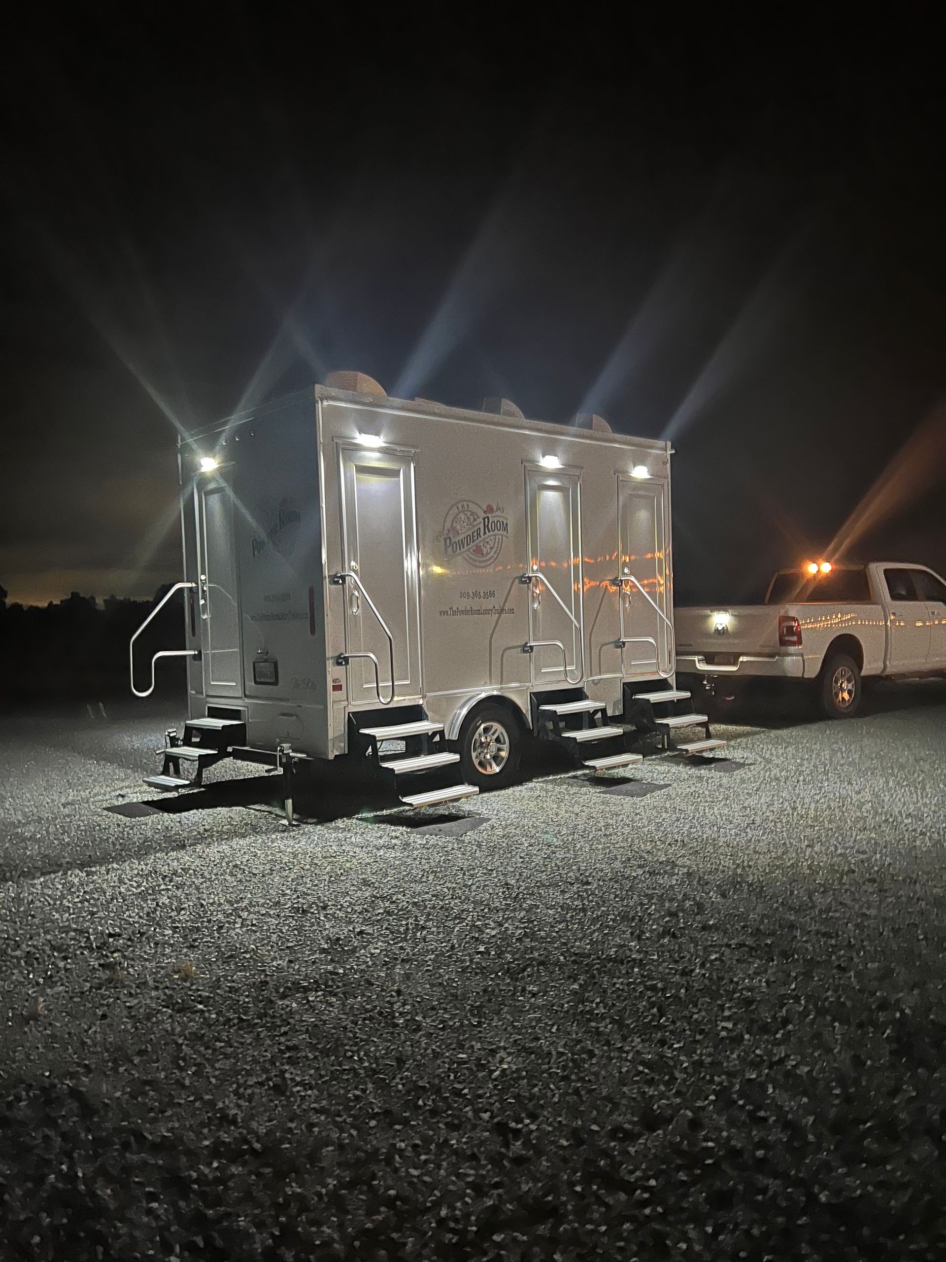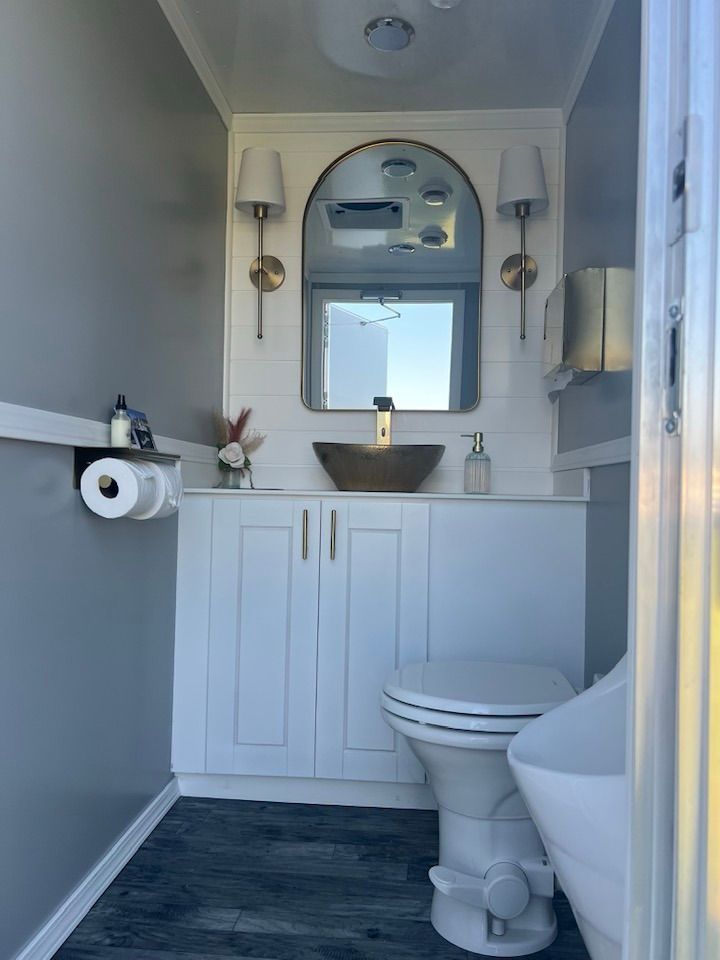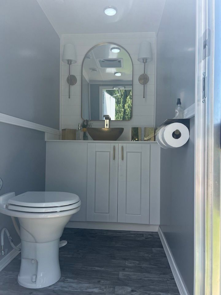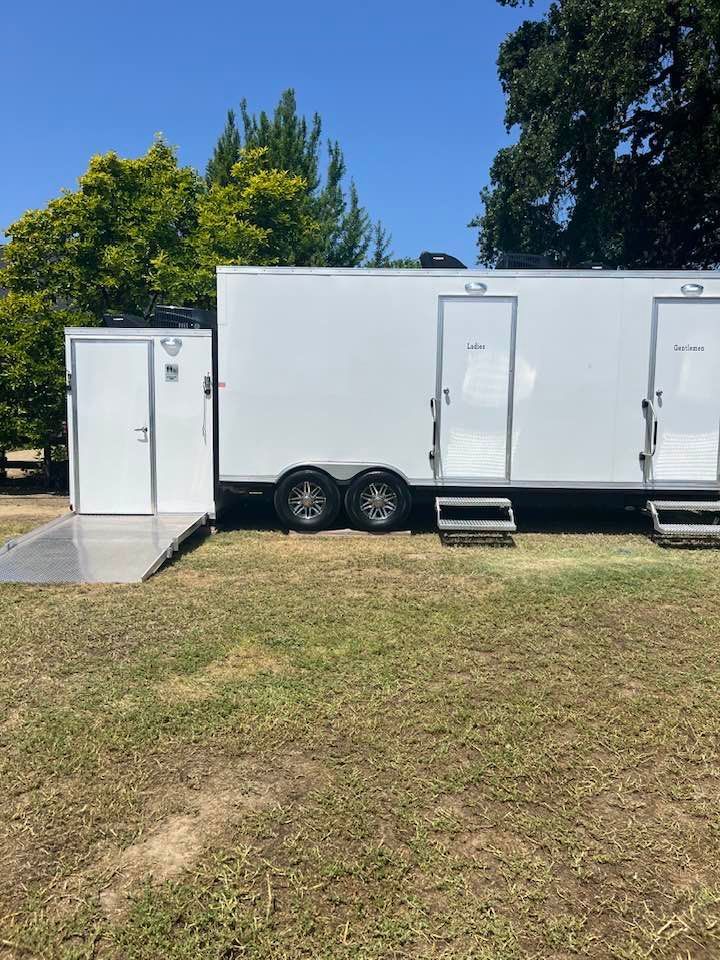 The Powder Room Luxury Trailers are located in the beautiful Sierra Foothills of Amador County, California. We are a husband and wife team who love helping people make their events extra special with our customer service, the variety of products we offer, and our attention to details that will make your day perfect! We provide Luxury Restroom Trailers to pamper your guests. Our trailers offer water flowing sinks, touchless faucets, hands-free flushing toilets, modern and stylish interiors. The luxurious interiors include heat or air conditioning. We have curated six styles of restroom trailers to meet your needs.