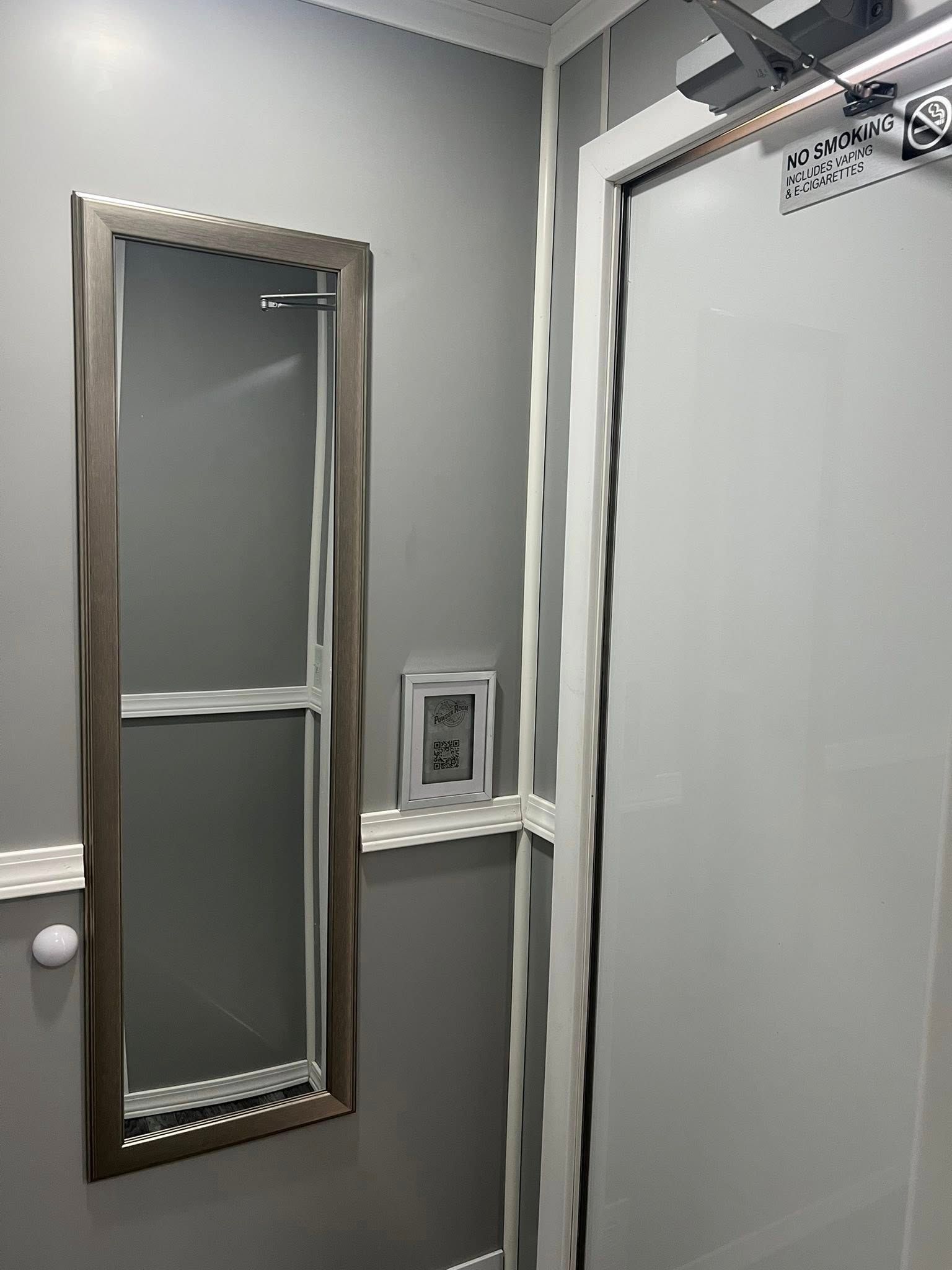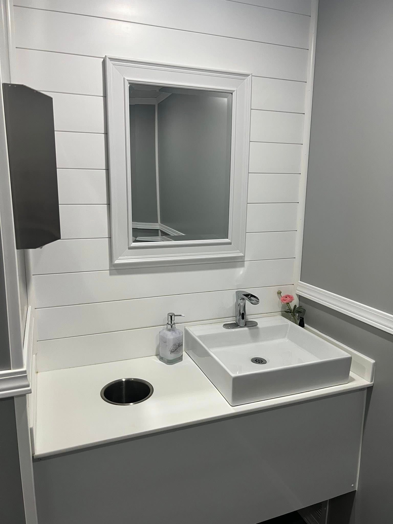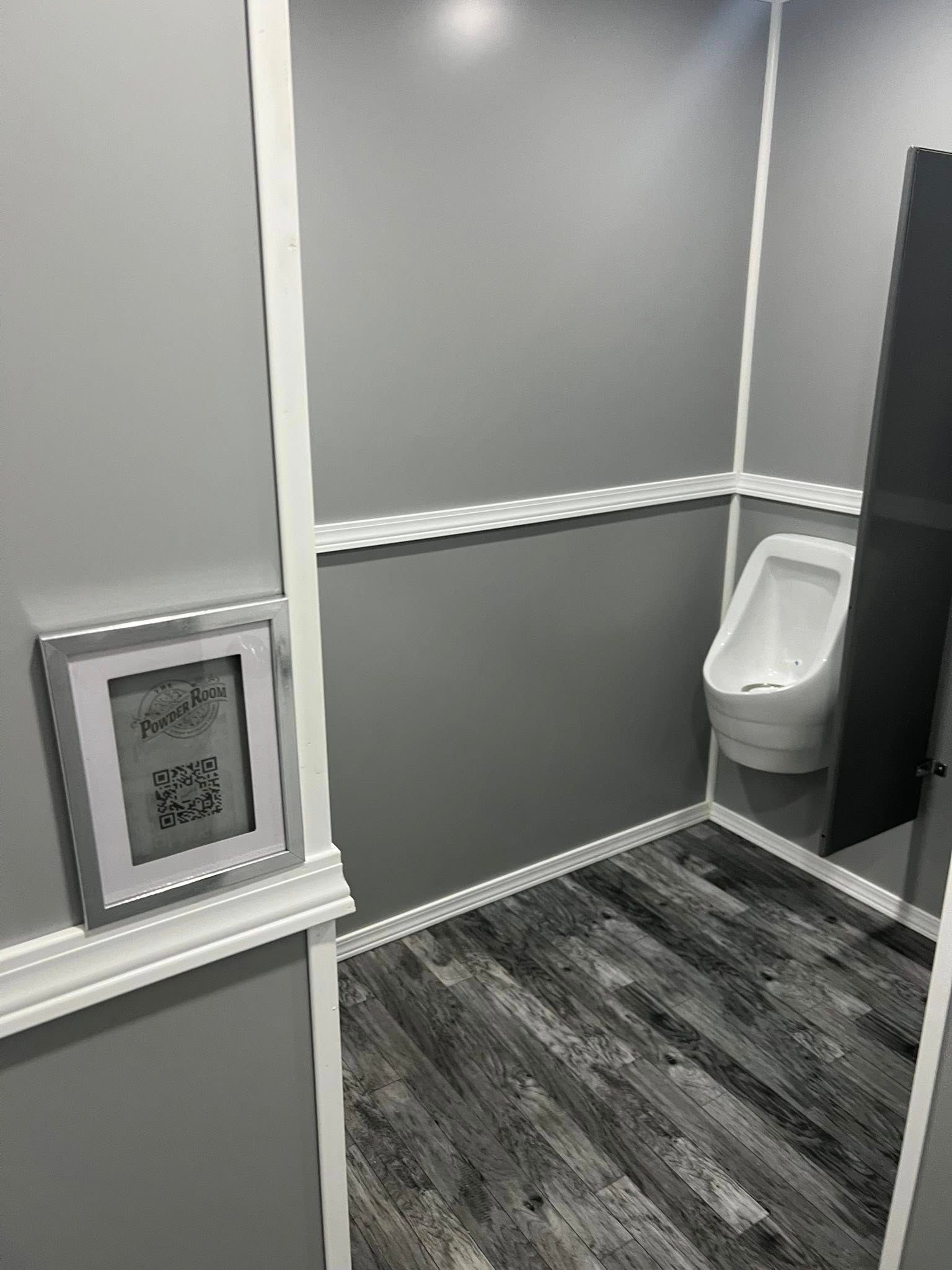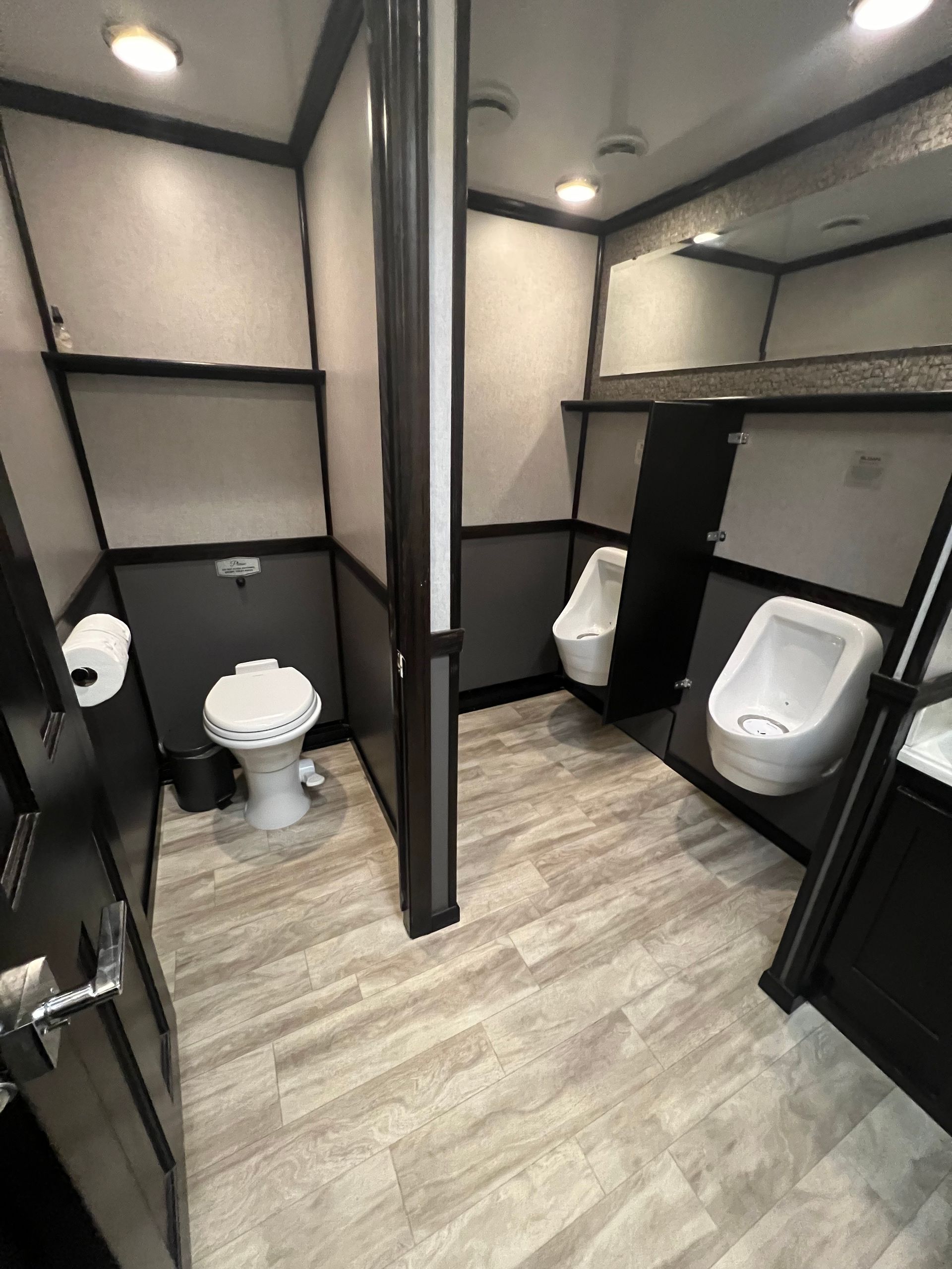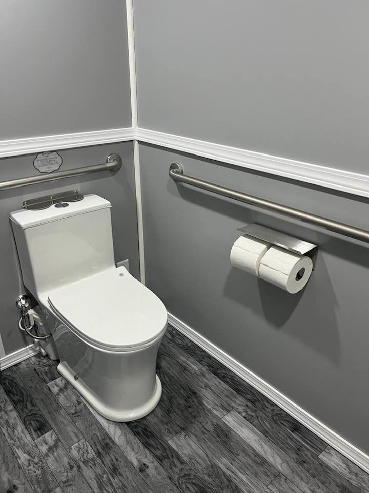 The Majestic, is one of our largest luxury trailers and can accommodate up to 500 guests! This unit has a hotel vibe and is great for larger groups with her two doors and six stations. The Majestic is equipped with private commodes, touchless faucets, above counter sinks, and hands-free flushing toilets. This luxurious restroom will keep your guests cool in the summer and warm in the winter, while enjoying the music feature!